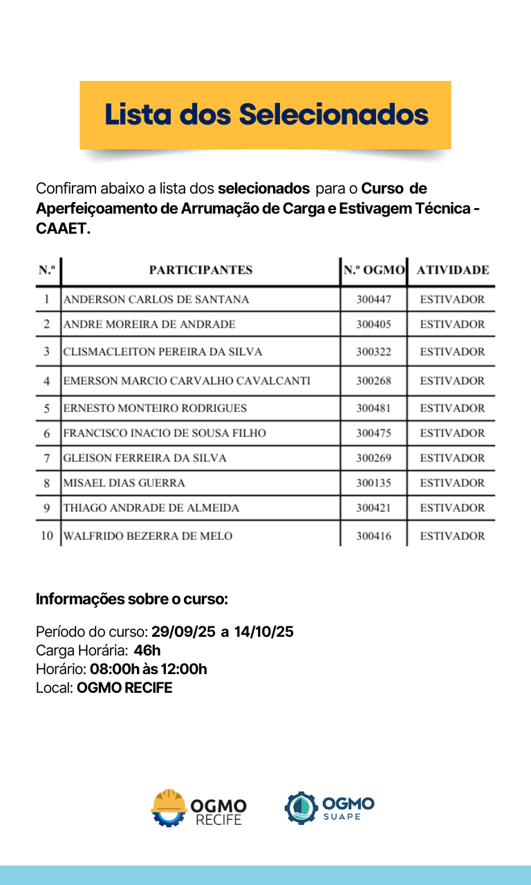 Este curso é destinado a CAPATAZIA e ESTIVADORES.