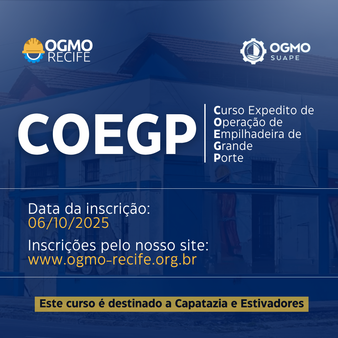 No dia 06/10/2025, serão abertas as inscrições para o Curso COEGP - Curso Expedito de Empilhadeira de Grande Porte.