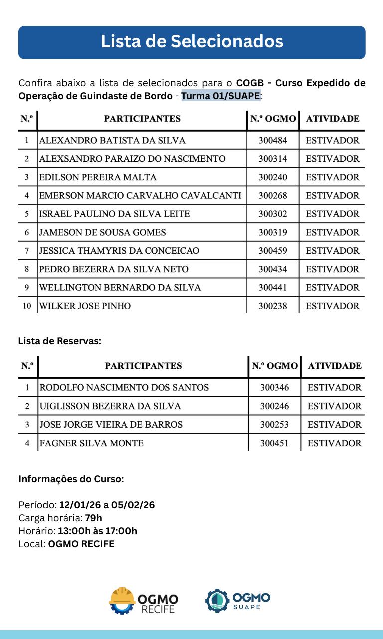 Curso COGB - Lista de Selecionados para avaliação psicológica