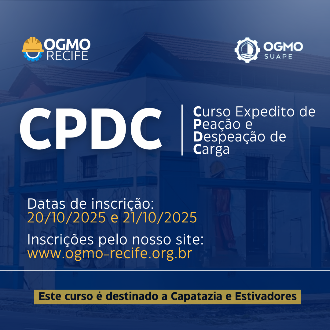 Nos dias 20/10/2025 e 21/10/2025, serão abertas as inscrições para o Curso CPDC - Curso Expedito de Peação e Despeação de Carga.